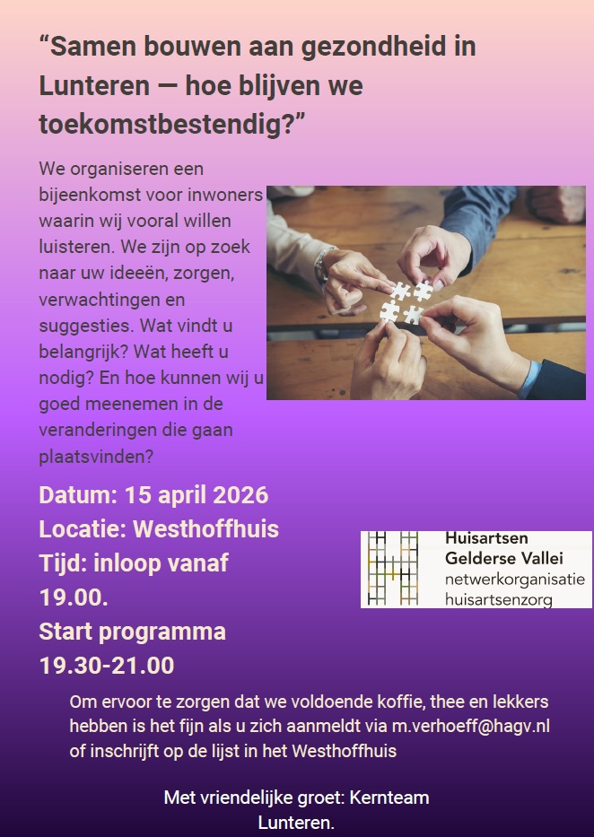 * Na 12.00 belt u voor spoedzaken die niet tot donderdag kunnen wachten naar huisartsenpraktijk Kasbergen (0318-482700).